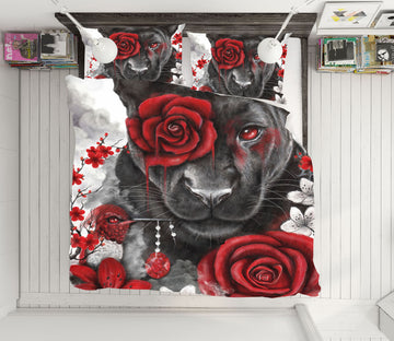 3D Red Rose Panther 8602 Sheena Pike Bedding Bed Pillowcases Quilt Cover Duvet Cover