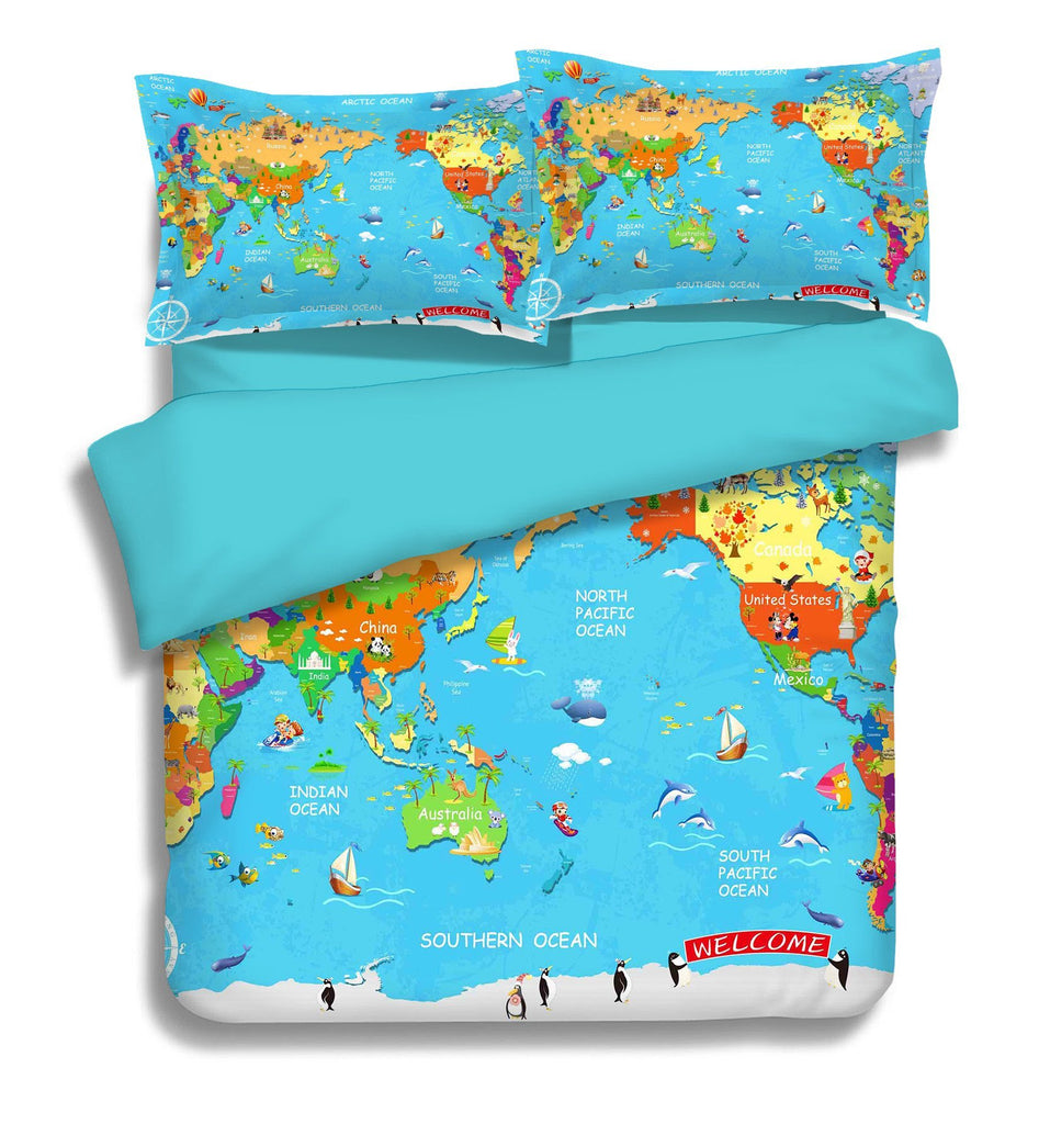 3D Colored World Map 353 Bed Pillowcases Quilt
