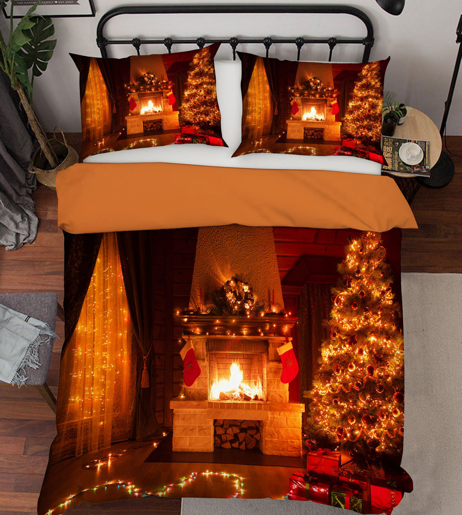 3D Fireplace 52190 Christmas Quilt Duvet Cover Xmas Bed Pillowcases Sinsin