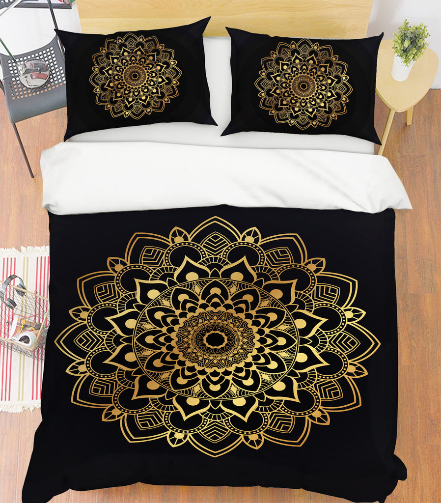 3D Golden Pattern 67039 Bed Pillowcases Quilt