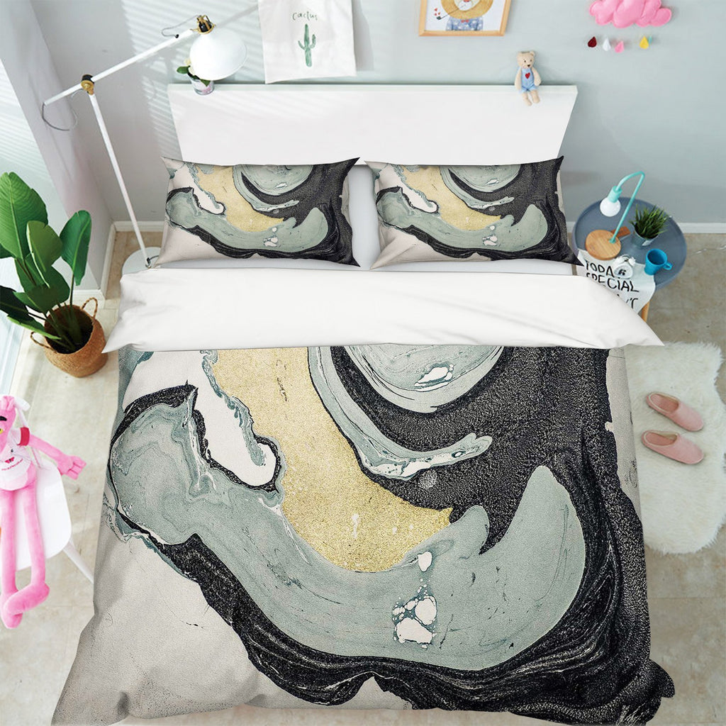3D Layering Black Sand 079 Bed Pillowcases Quilt
