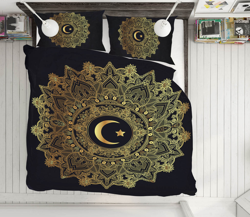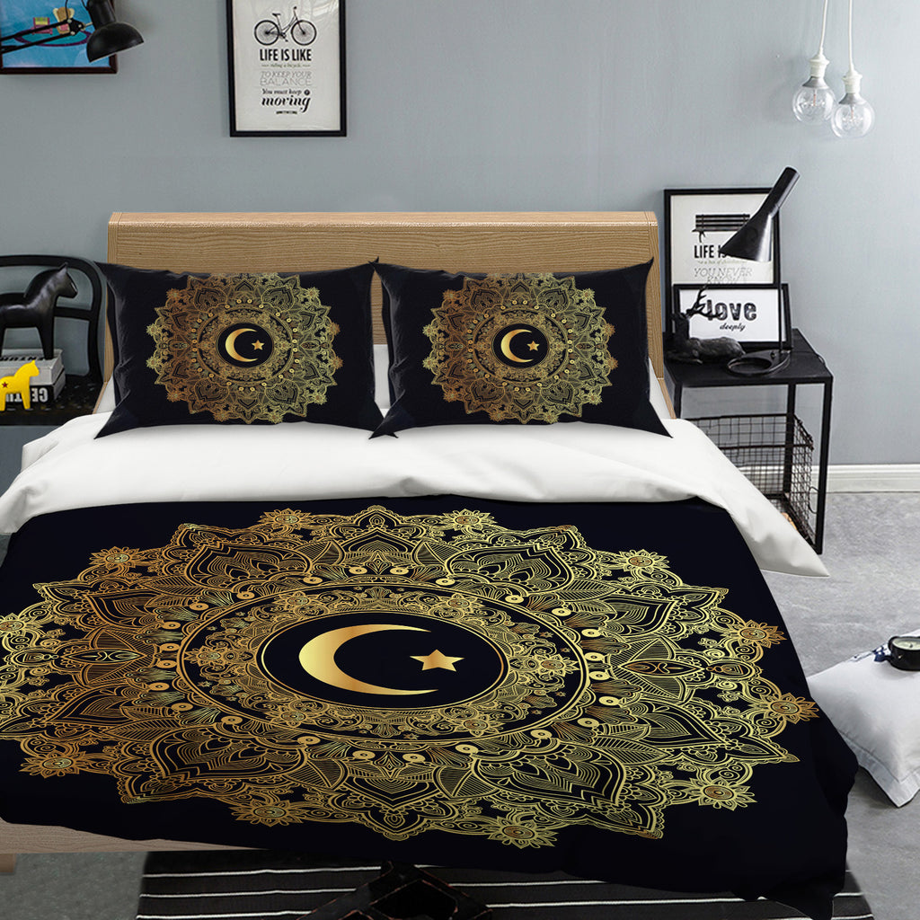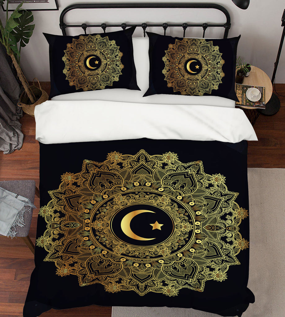 3D Moon Golden Pattern 67047 Bed Pillowcases Quilt