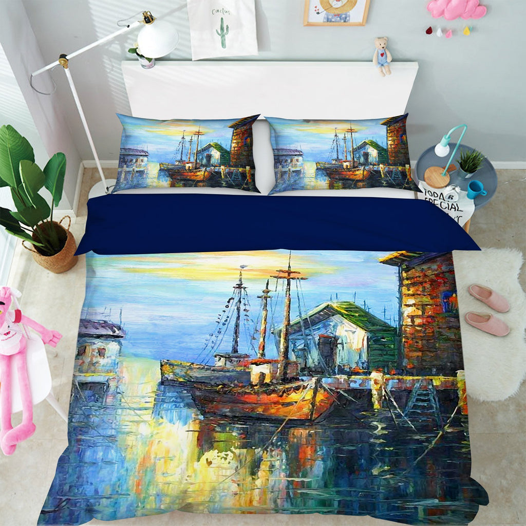 3D Oil Painting Boat 090 Bed Pillowcases Quilt