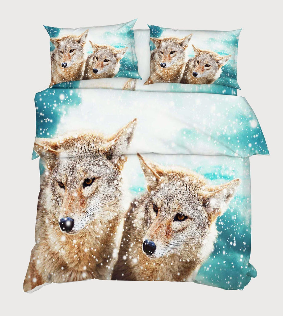 3D Snow Wolves 80 Bed Pillowcases Quilt