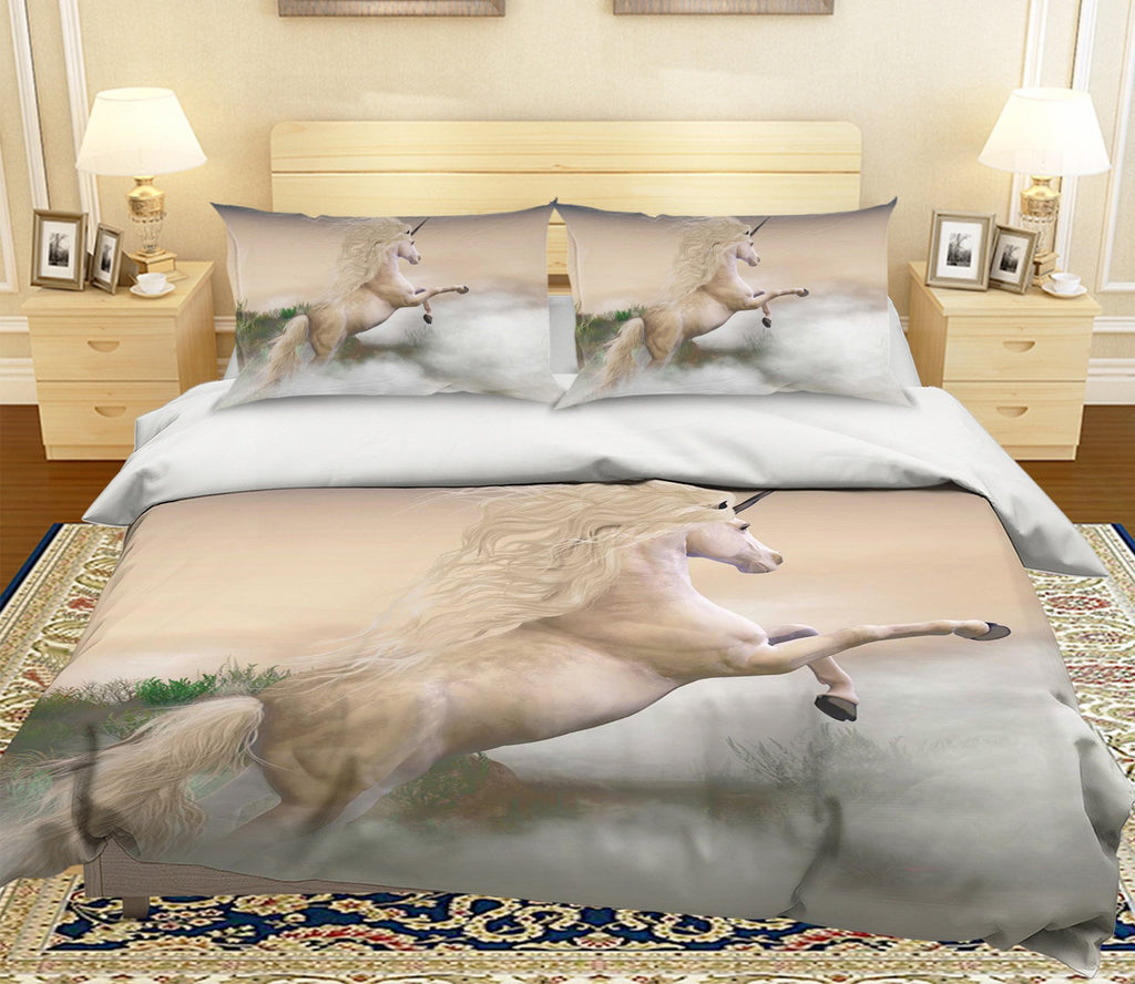 3D White Fog Unicorn 053 Bed Pillowcases Quilt
