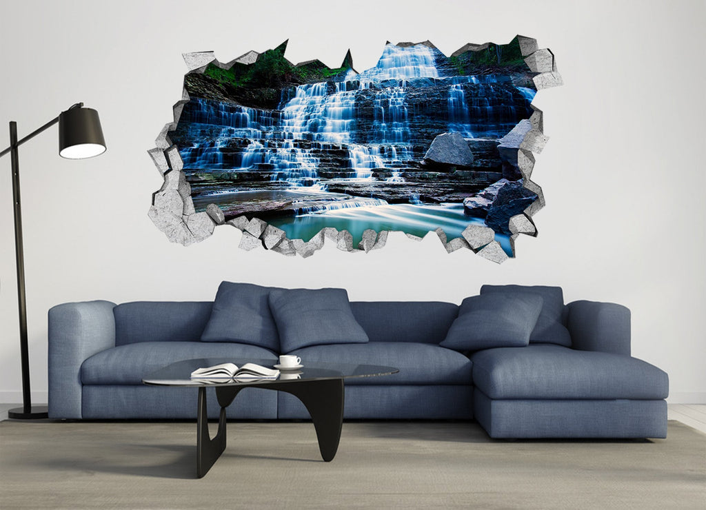 3D Rock Formation Waterfall 165 Broken Wall Murals