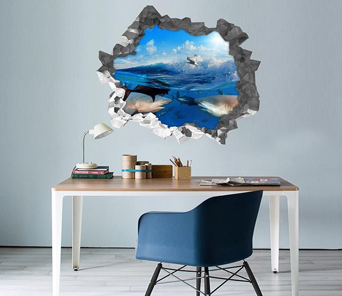 3D Sea Fishes Birds 188 Broken Wall Murals