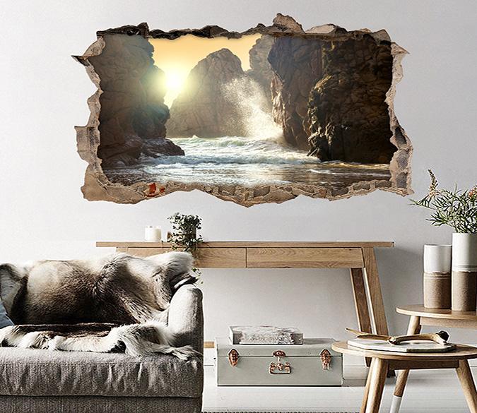 3D Sea Mountains Waves 029 Broken Wall Murals