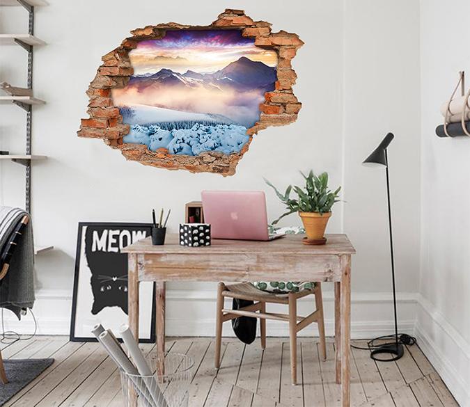 3D Snow Mountains Forest 207 Broken Wall Murals