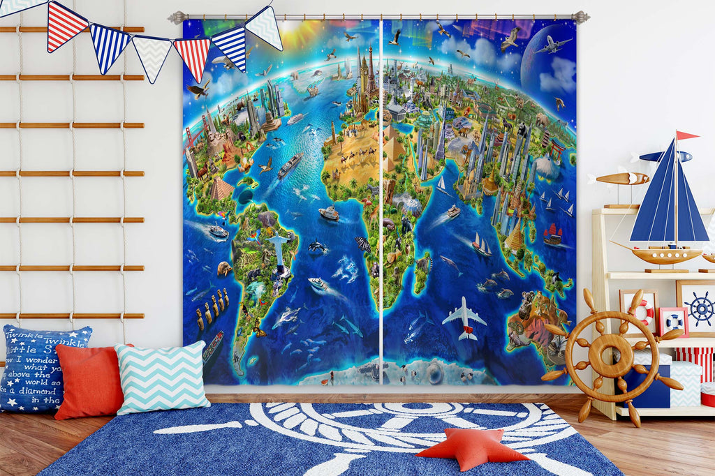 3D Cute Earth 061 Adrian Chesterman Curtain Curtains Drapes