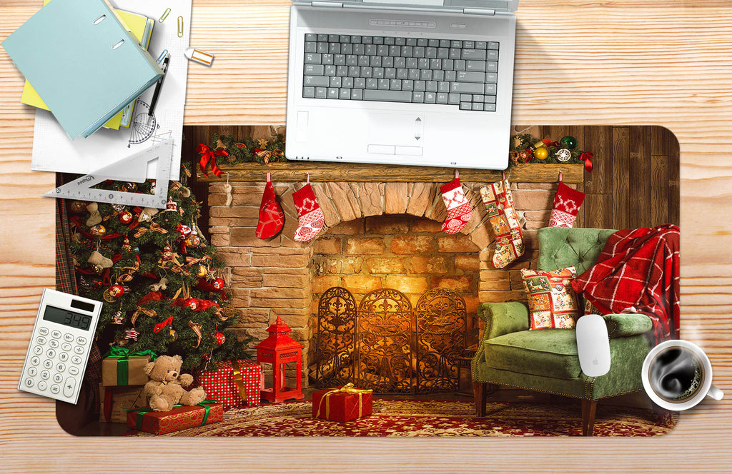 3D Fireplace Sofa 53190 Christmas Desk Mat Xmas