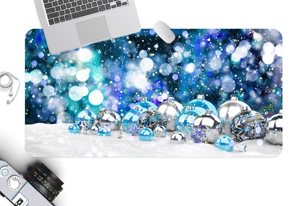 3D Silver Blue Ball 53198 Christmas Desk Mat Xmas