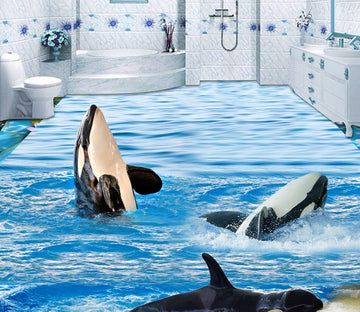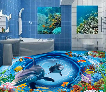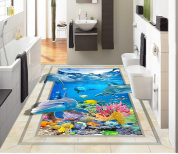 3D Beautiful Dolphins 216 Floor Mural Self-Adhesive Sticker Bathroom Non-slip Waterproof Flooring Murals