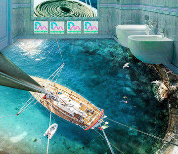 3D Sea Sailing Boat WG714 Floor Mural Self-Adhesive Sticker Bathroom Non-slip Waterproof Flooring Murals