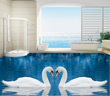 3D Swan Pair 146 Floor Mural Self-Adhesive Sticker Bathroom Non-slip Waterproof Flooring Murals