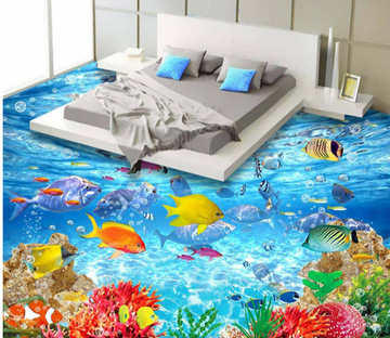 3D Fish Swimming 236 Floor Mural Self-Adhesive Sticker Bathroom Non-slip Waterproof Flooring Murals