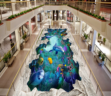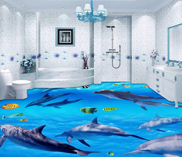 3D Group Of Dolphins 336 Floor Mural Self-Adhesive Sticker Bathroom Non-slip Waterproof Flooring Murals