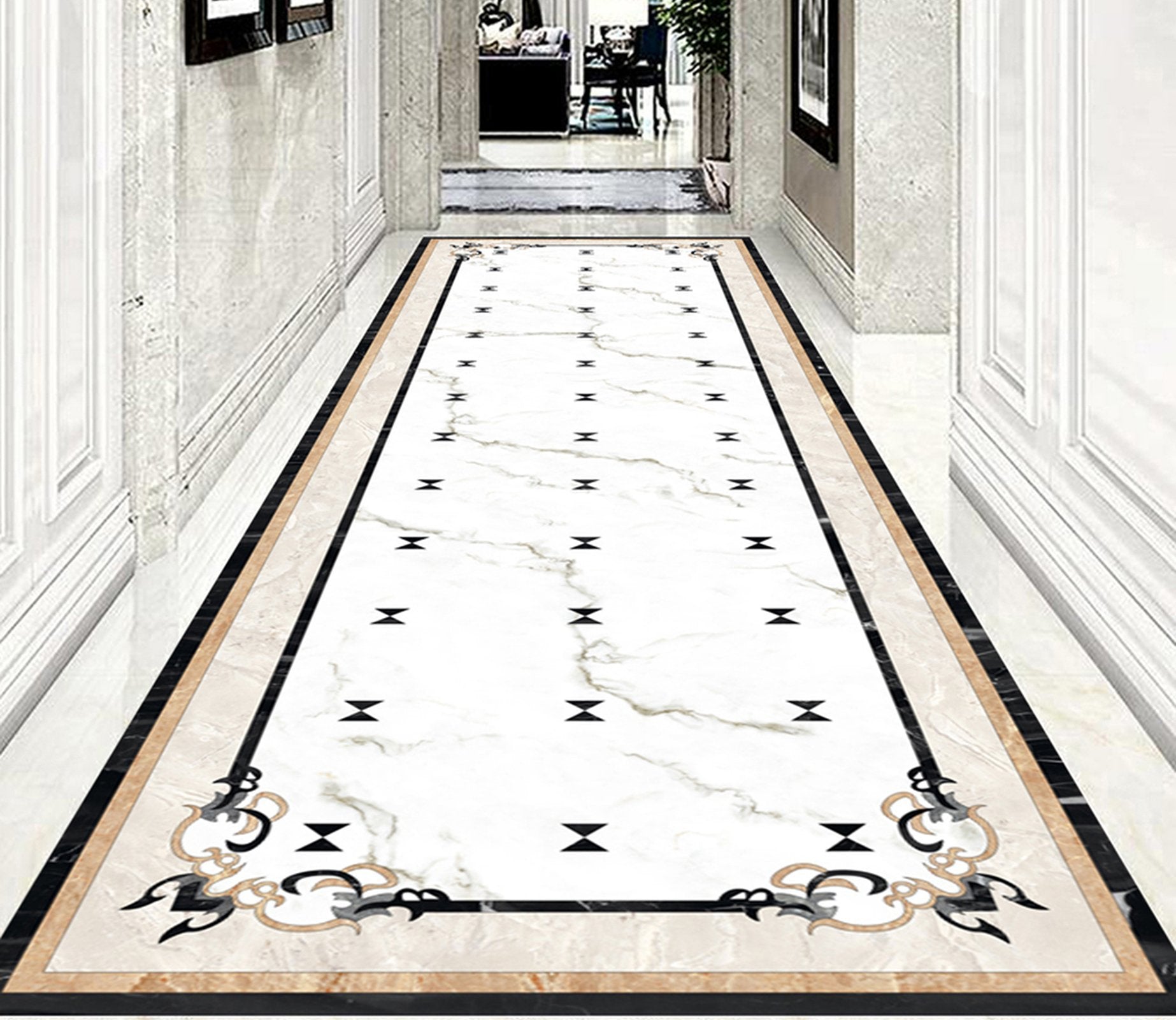 Make guidelines on the ground. Our Floor murals are always laid from the left to the right. It is essential that the first length is straight.