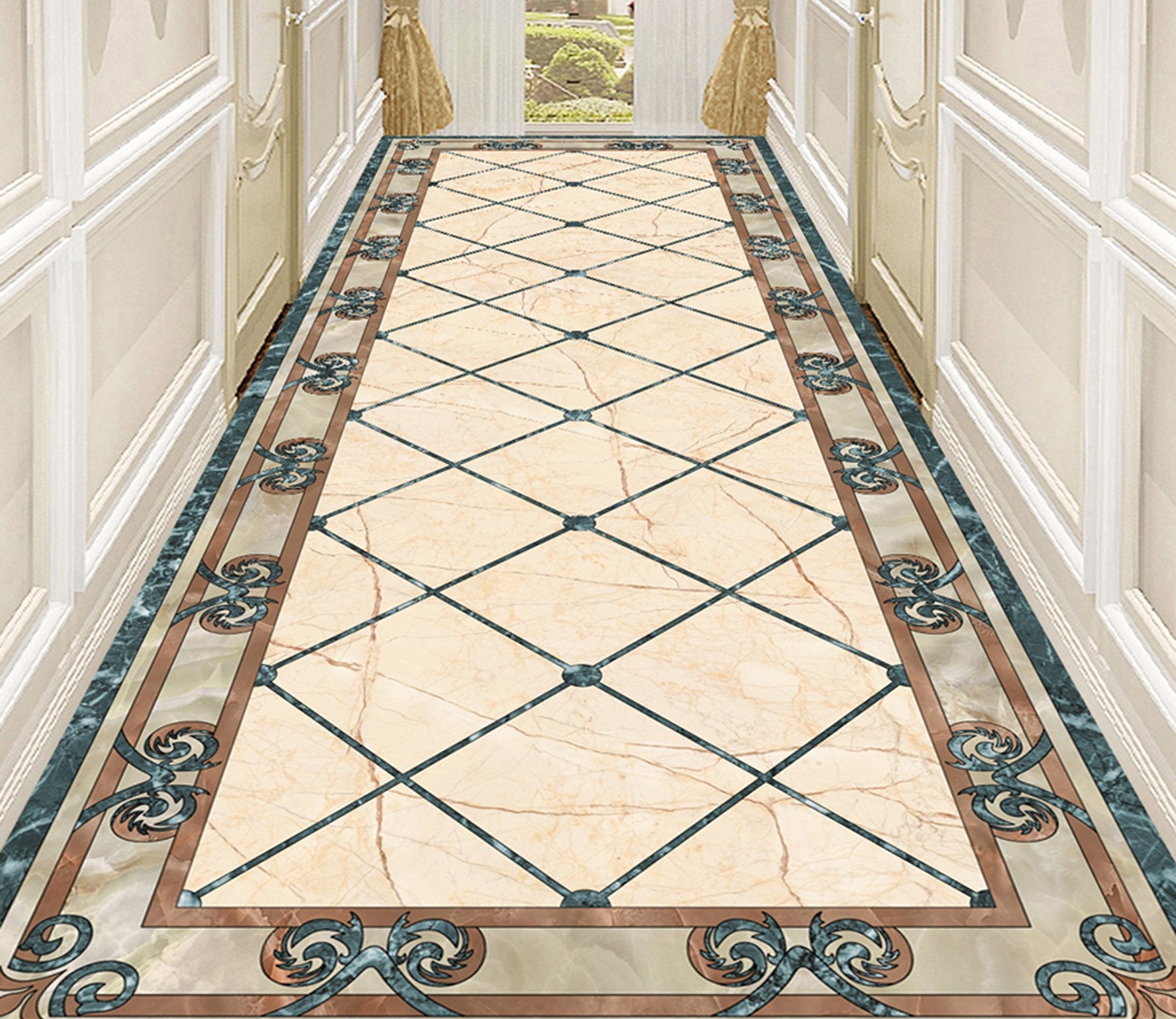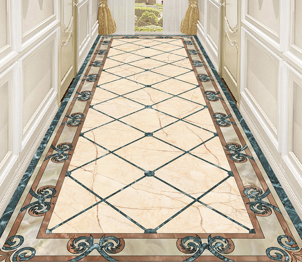 Make guidelines on the ground. Our Floor murals are always laid from the left to the right. It is essential that the first length is straight.