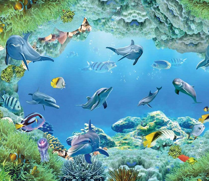 3D Charming Ocean Floor Mural Non-slip, Waterproof & Removable Rug Mat & Floor Murals