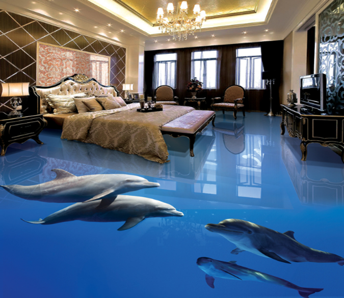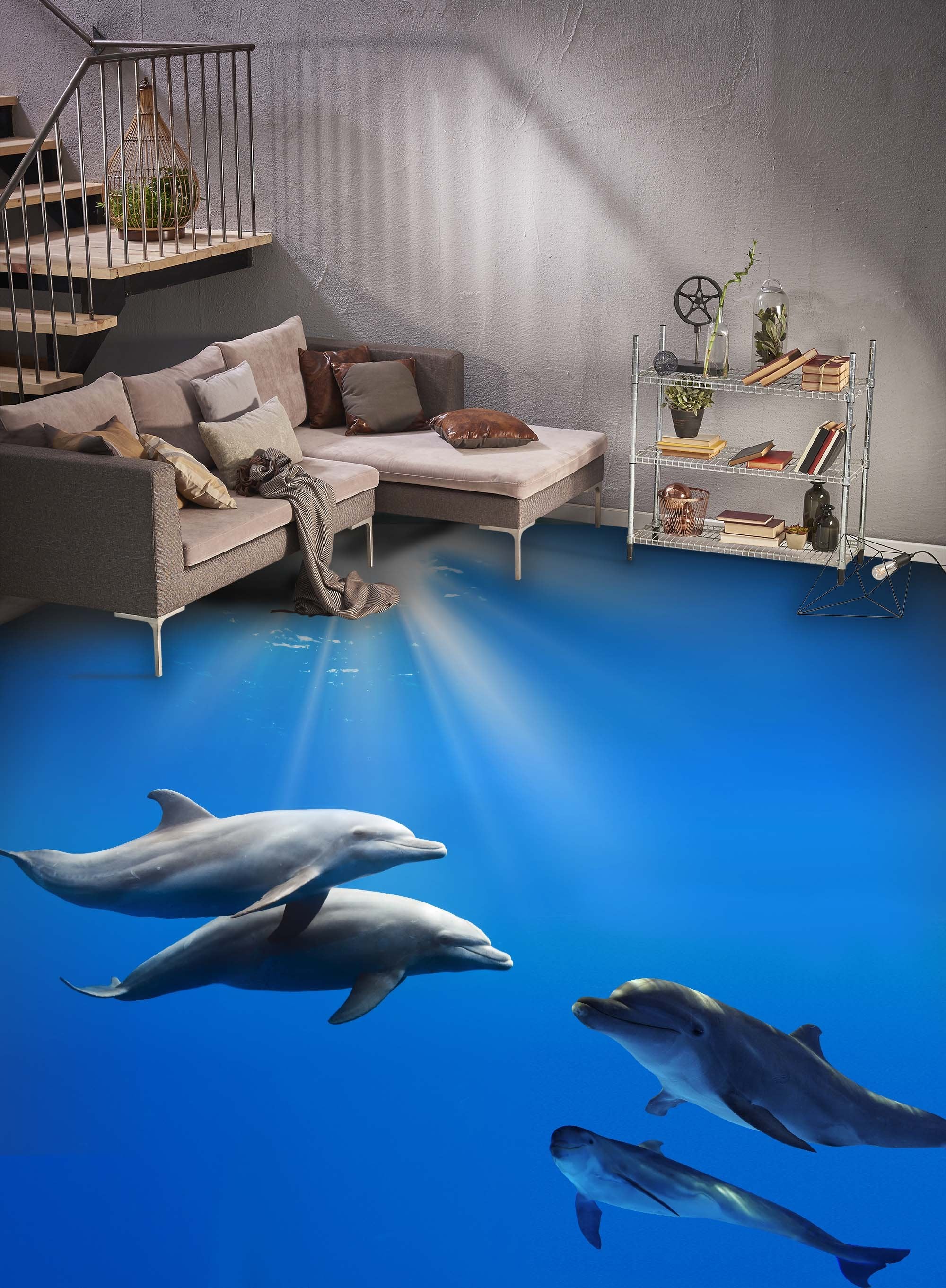 3D Smart Dolphins 077 Floor Mural Self-Adhesive Sticker Bathroom Non-slip Waterproof Flooring Murals