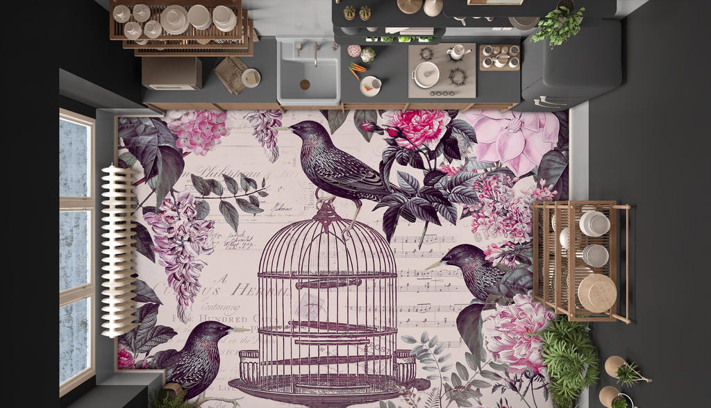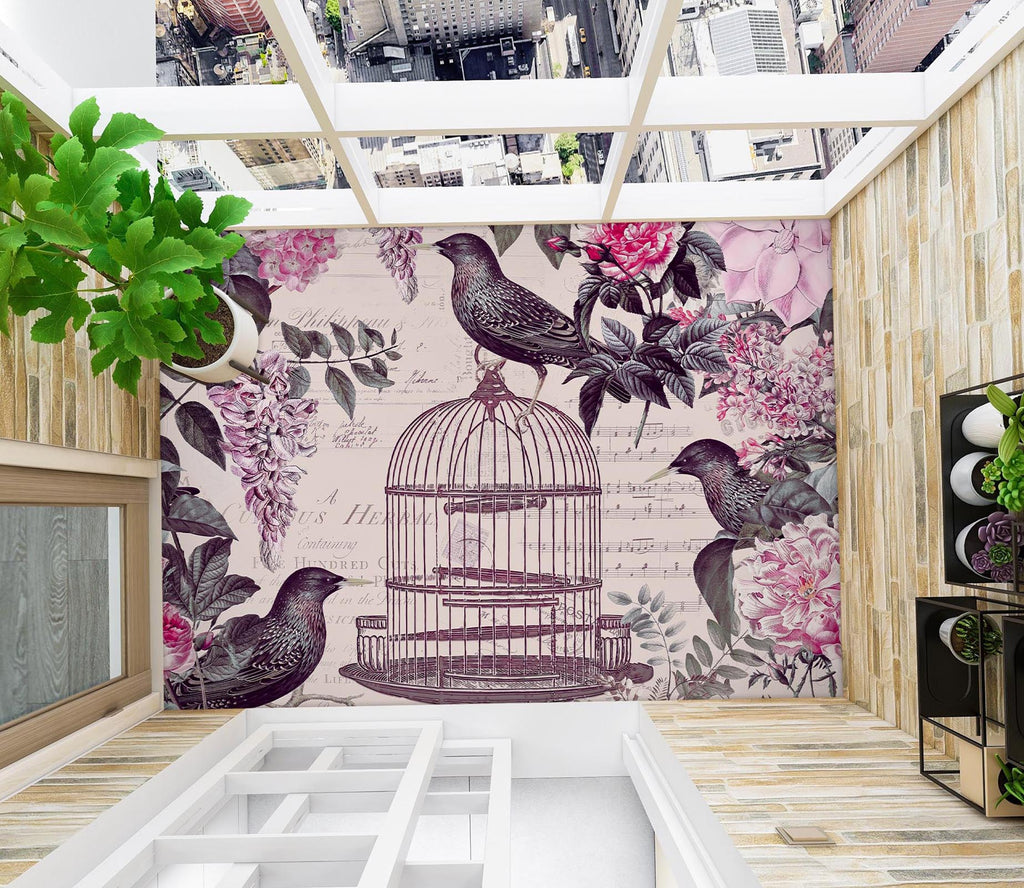 3D Birdcage Pink Flower Bush 140134 Andrea Haase Floor Mural Wallpaper Murals Self-Adhesive Removable Print Epoxy