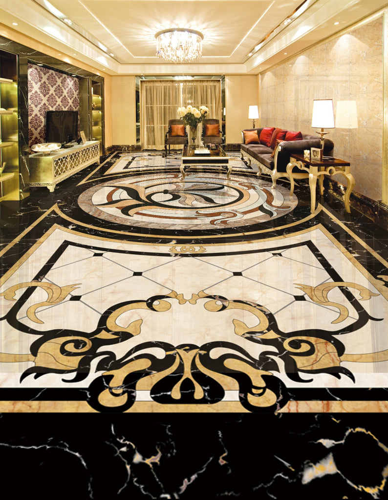 3D Black Pattern WG066 Floor Mural Self-Adhesive Sticker Bathroom Non-slip Waterproof Flooring Murals