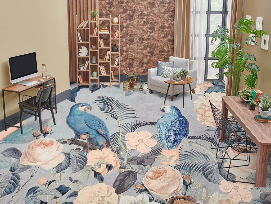 3D Blue Parrot Flower Bush 104159 Andrea Haase Floor Mural Sinsin