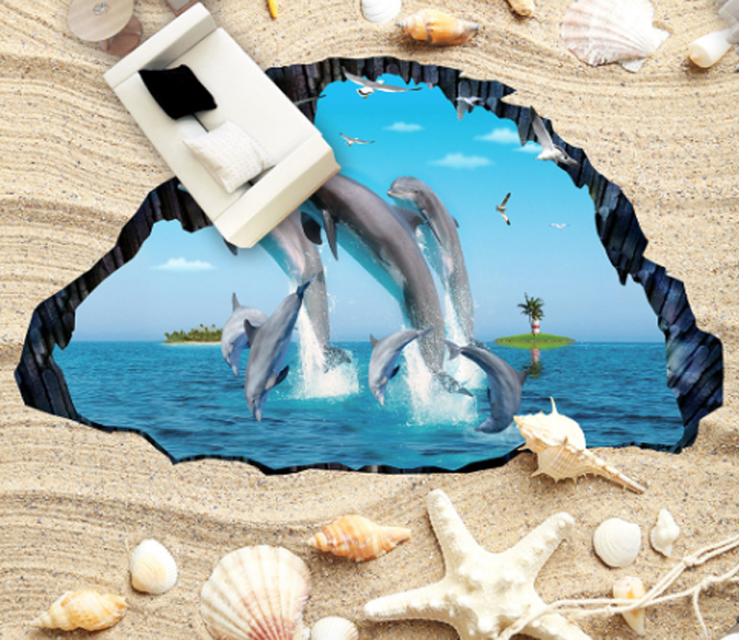3D Dancing Dolphins Floor Mural Non-slip, Waterproof & Removable Rug Mat & Floor Murals