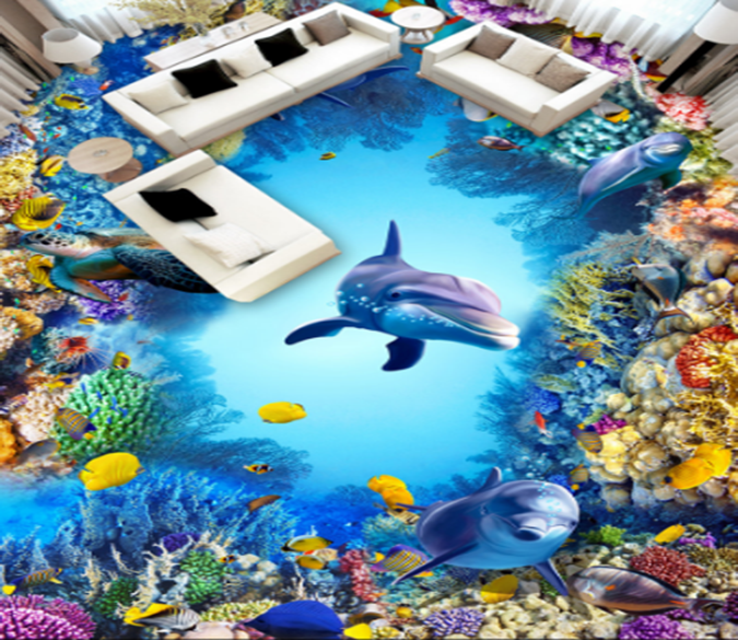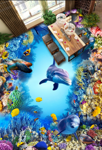 3D Deep Sea World 391 Floor Mural Self-Adhesive Sticker Bathroom Non-slip Waterproof Flooring Murals