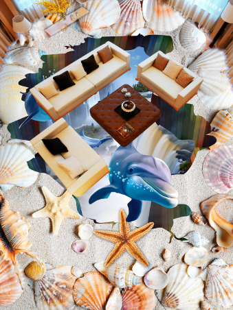 3D Docile Dolphins 048 Floor Mural Self-Adhesive Sticker Bathroom Non-slip Waterproof Flooring Murals