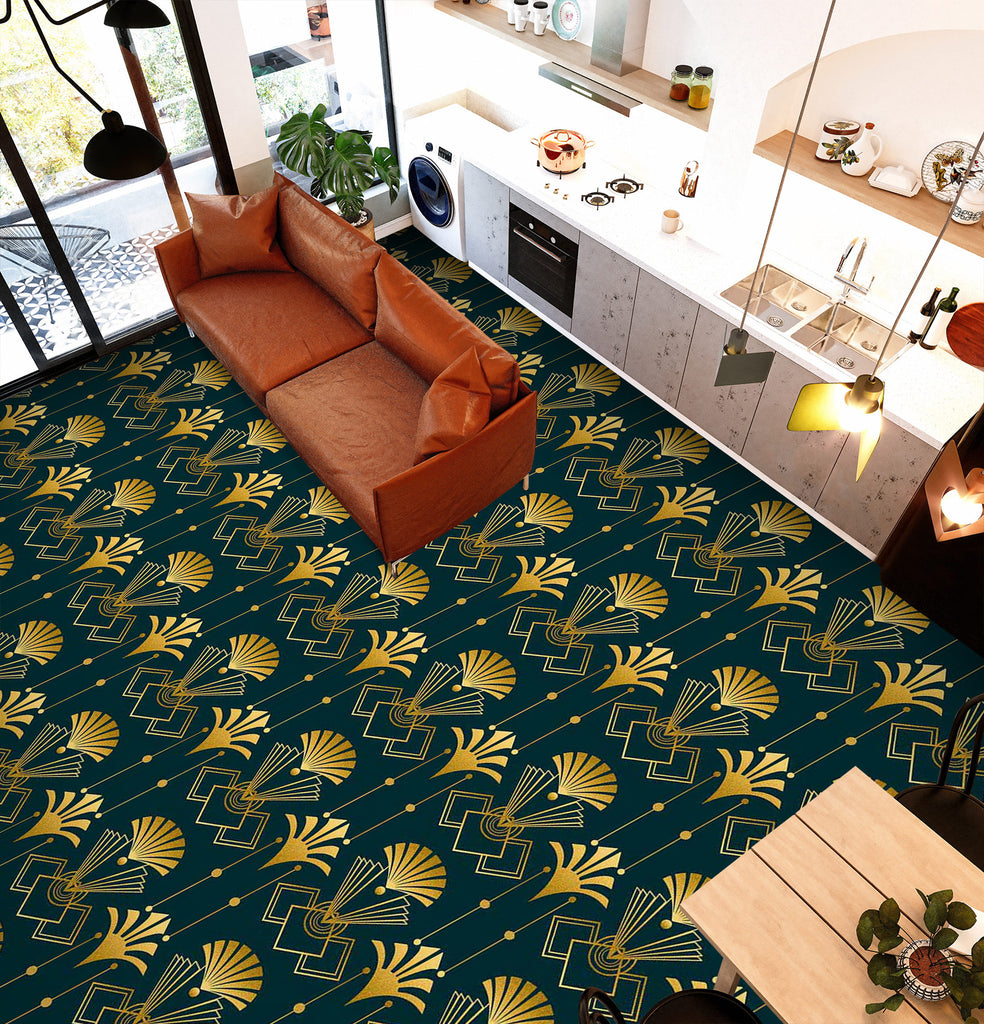 3D Golden Fan Pattern 102114 Andrea Haase Floor Mural Sinsin