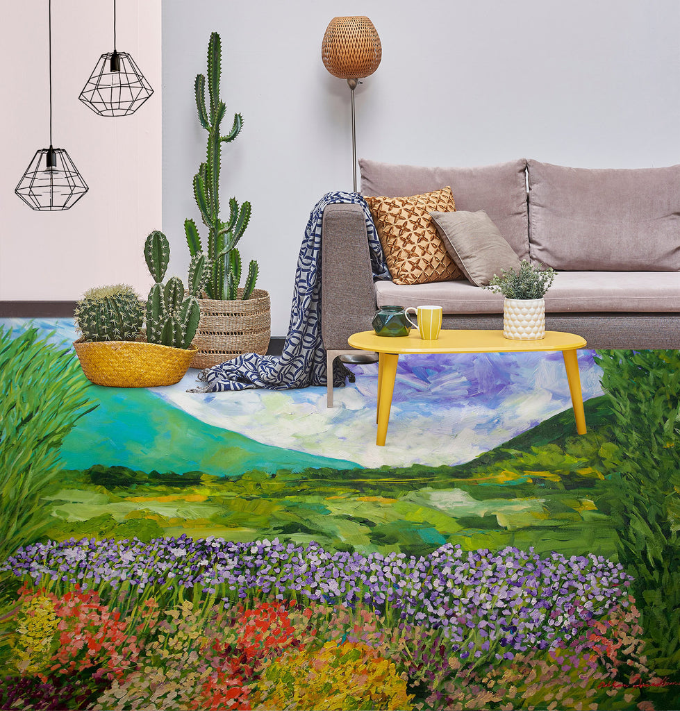 3D Grass Mountain Flowers 9677 Allan P. Friedlander Floor Mural Wallpaper Murals Self-Adhesive Removable Print Epoxy