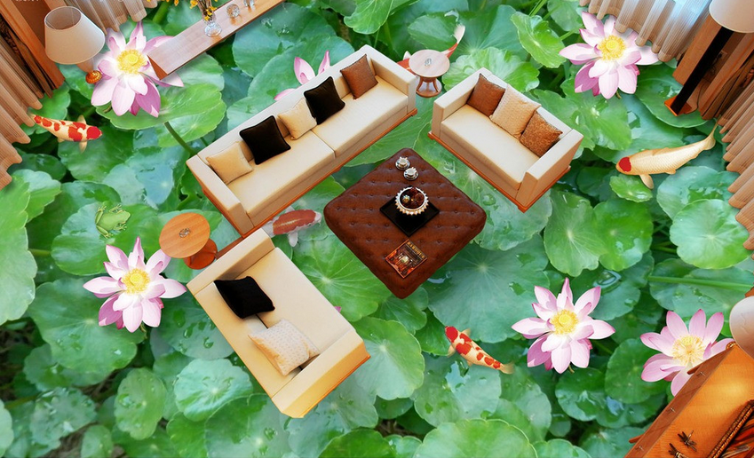 3D Green Lotus Pond Floor Mural