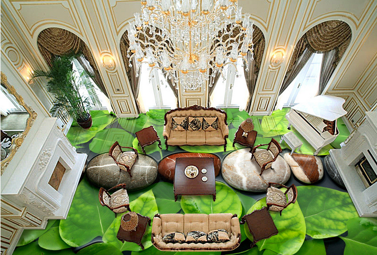 3D Leaves Stones 020 Floor Mural Self-Adhesive Sticker Bathroom Non-slip Waterproof Flooring Murals