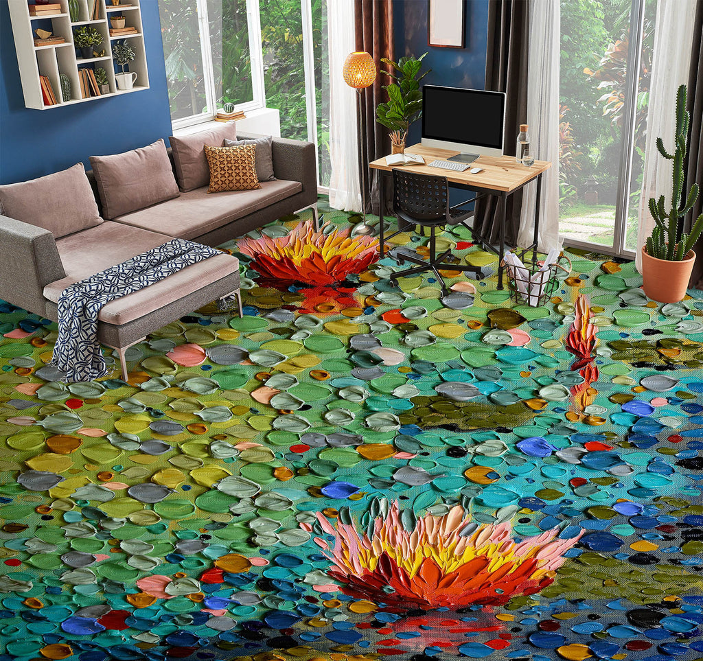 3D Lotus Pond 102169 Dena Tollefson Floor Mural Sinsin