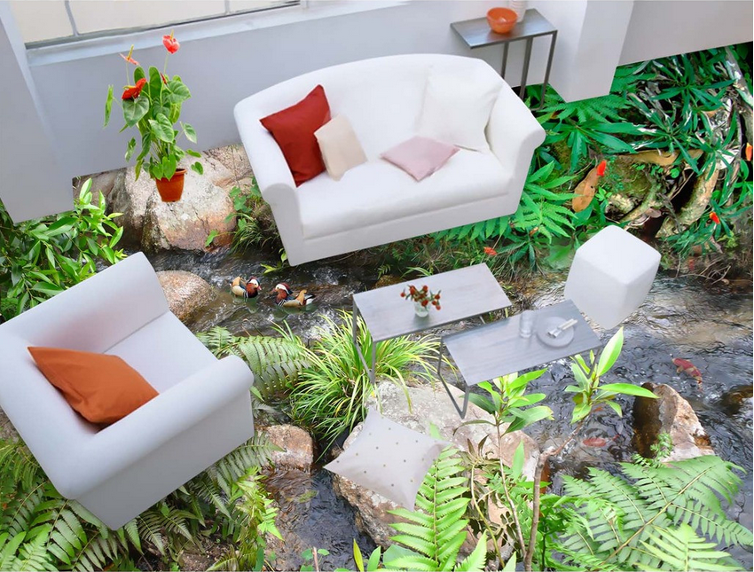 3D Stones Stream Floor Mural Non-slip, Waterproof  & Removable Rug Mat & Floor Murals