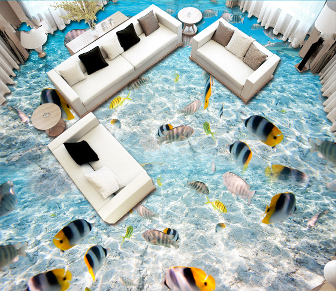 3D Striped Fish Floor Mural