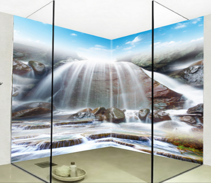3D Waterfalls Flow 097 Floor Mural Self-Adhesive Sticker Bathroom Non-slip Waterproof Flooring Murals