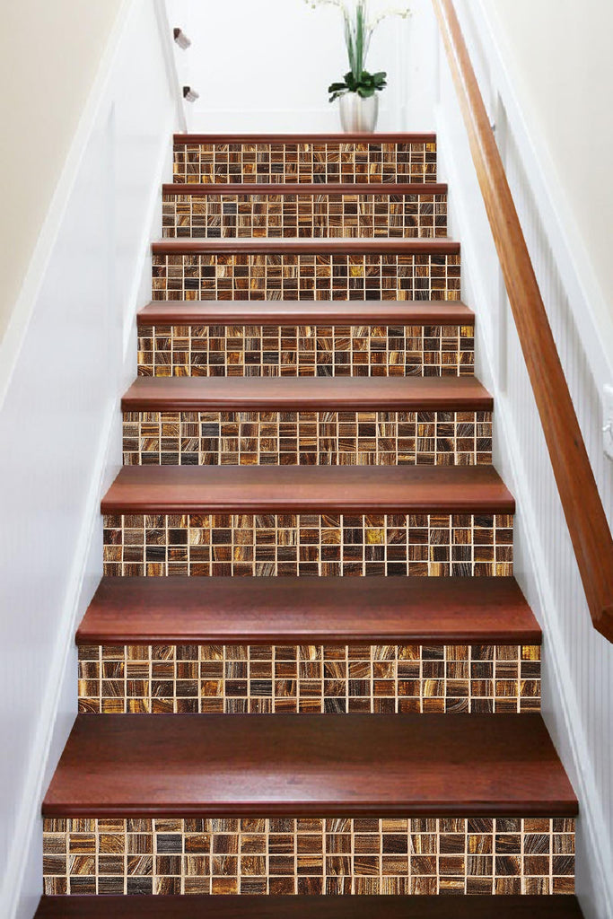 3D Wood Mosaic 975 Marble Tile Texture Stair Risers