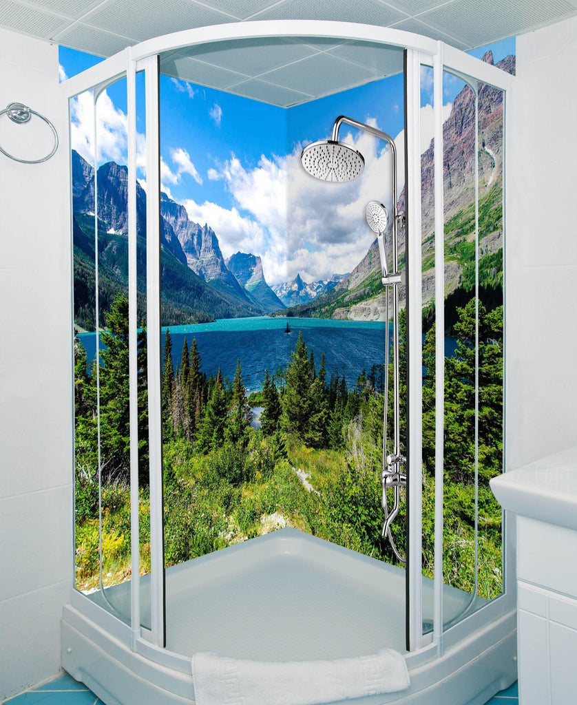 3D Mountain Lake Scenery 12 Bathroom Wallpaper