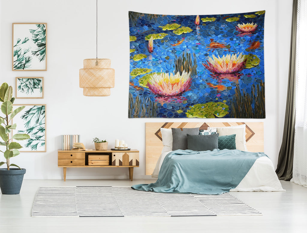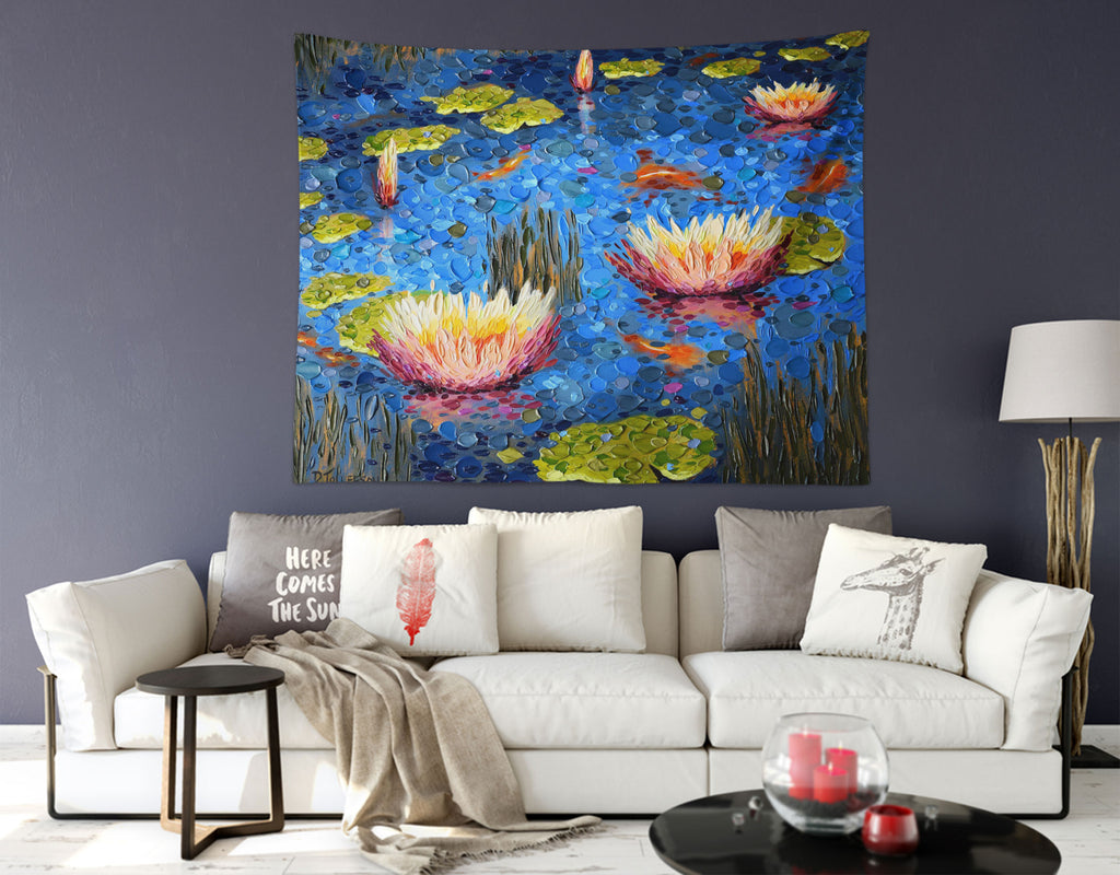 3D Lotus Pond 11805 Dena Tollefson Tapestry Hanging Cloth Hang