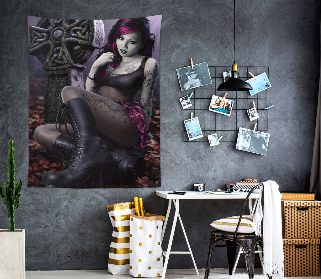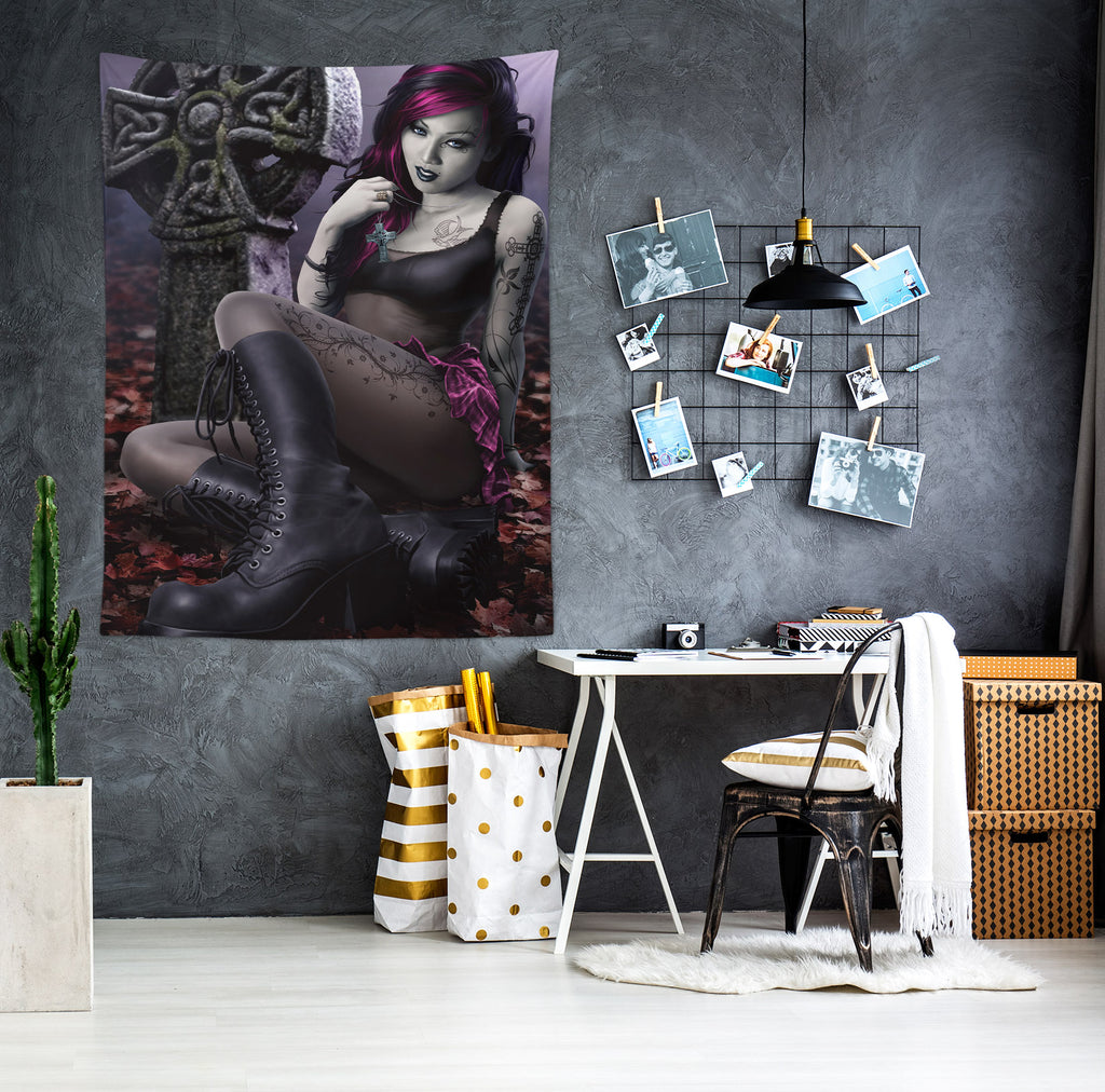 3D Stone Cross Woman 121164 Tom Wood Tapestry Hanging Cloth Hang Sinsin
