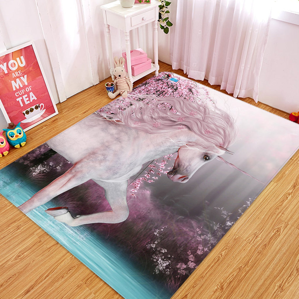 3D Peach Blossom Unicorn 98 Non Slip Rug Mat