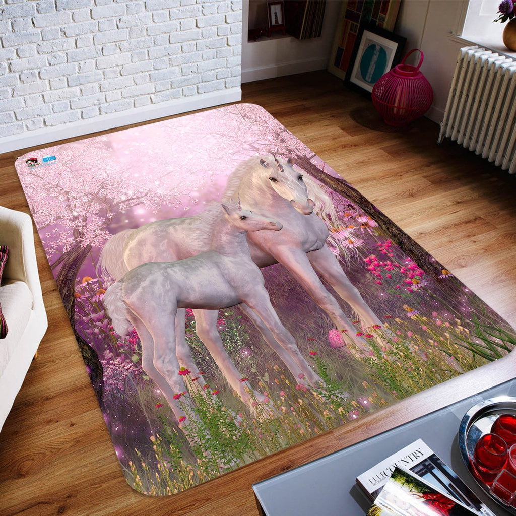 3D Pink Flower Unicorn 101 Non Slip Rug Mat