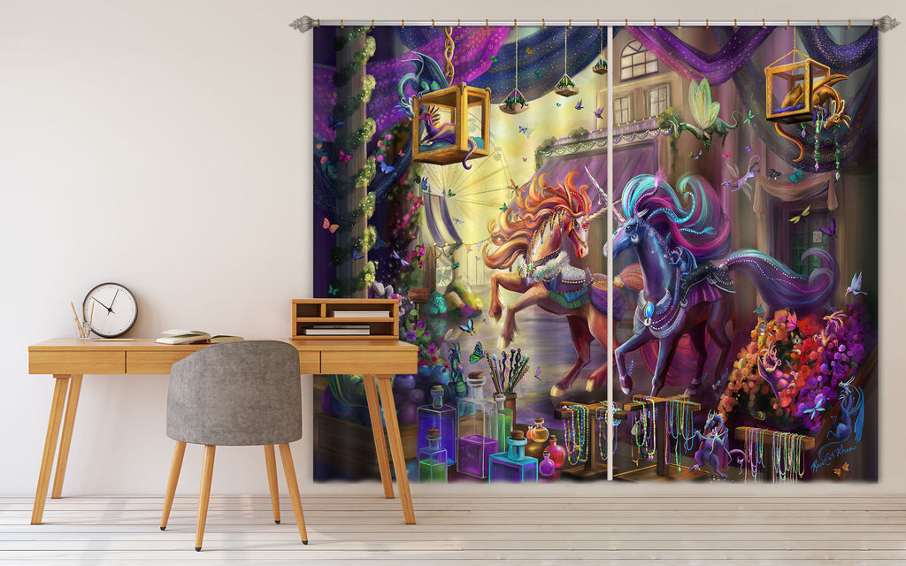 3D Sun Unicorn 128 Rose Catherine Khan Curtain Curtains Drapes Dai