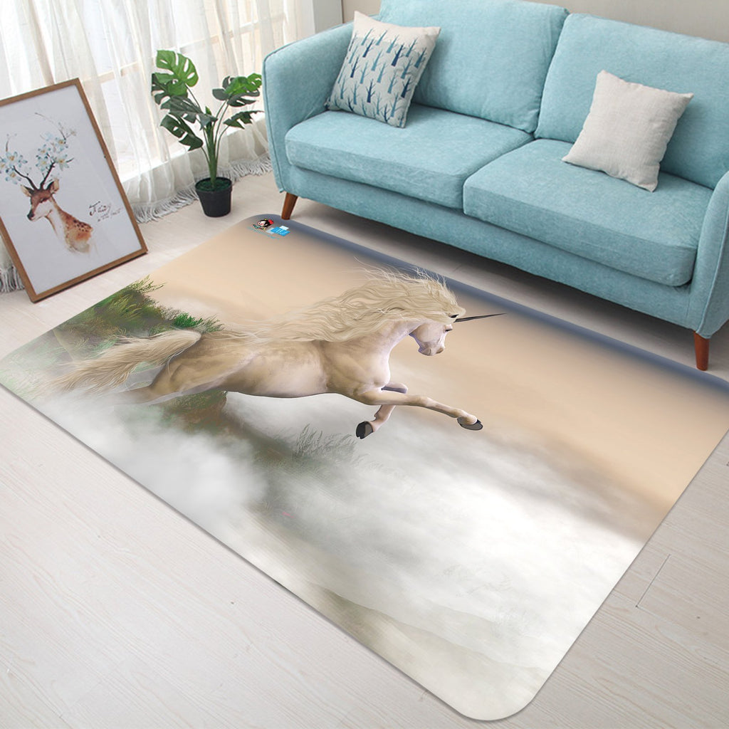 3D White Fog Unicorn 74 Non Slip Rug Mat