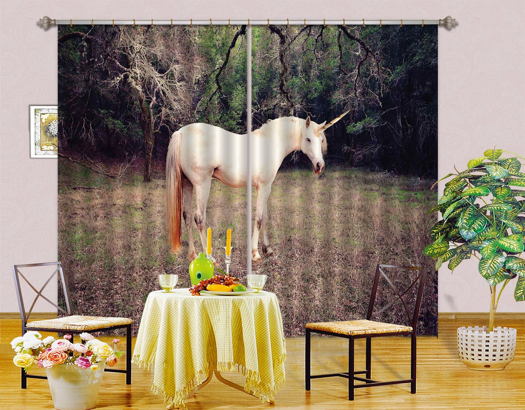 3D Woods White Unicorn 073 Curtains Drapes