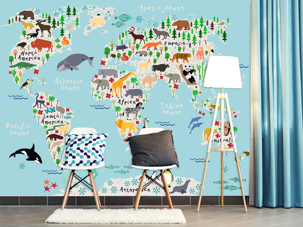 3D Animal Growth 2044 World Map Wall Murals Dai