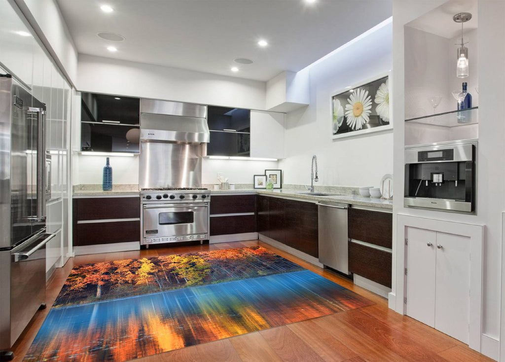 3D Lakeside Color Trees Kitchen Mat Floor Mural
